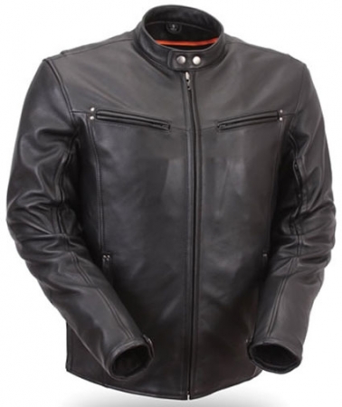 Men Premium Black Leather Motorcycle Jacket with Multiple Vents